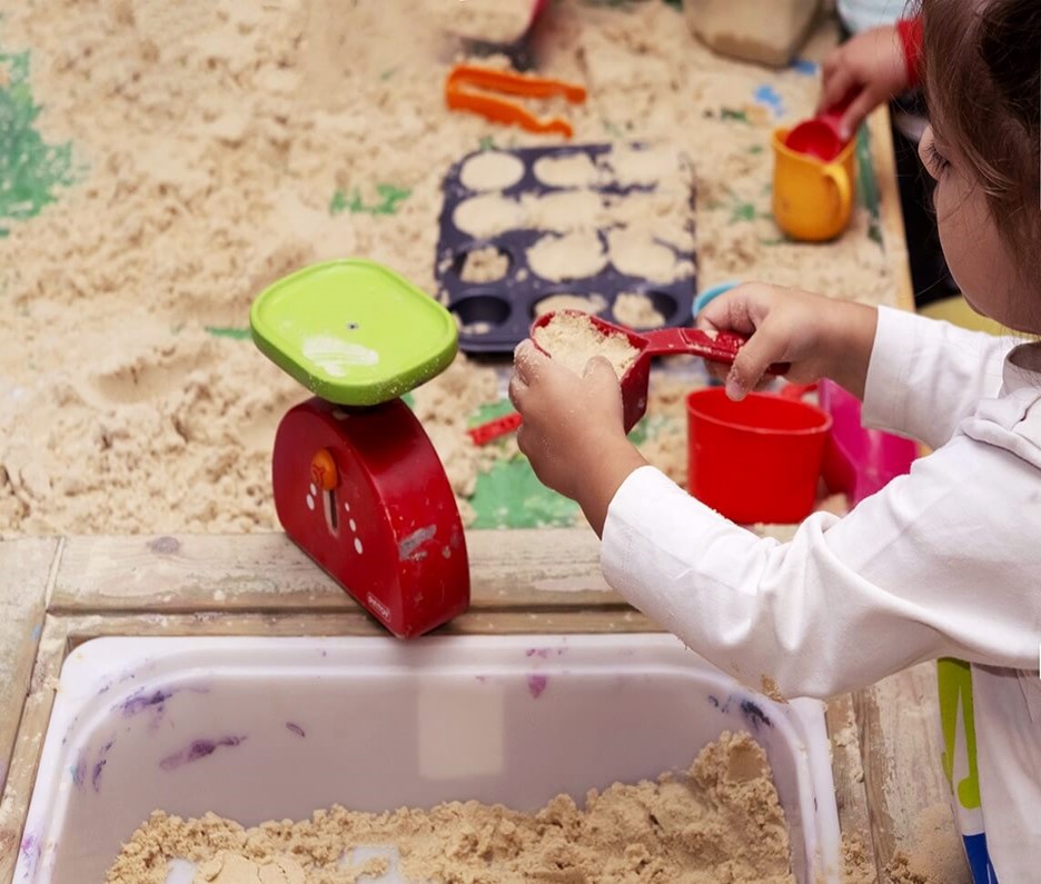 Ένας ακόμη τρόπος με τον οποίον αναπτύσσονται οι μαθηματικές δεξιότητες; Το γεγονός ότι πολλές Messy Play δραστηριότητες περιλαμβάνουν εργαλεία περισυλλογής, όπως δοσομετρικά κύπελλα και μπολ. Παίζοντας με τα υλικά, το παιδί μαθαίνει ότι χρειάζονται π.χ. πολλές κουταλιές για να γεμίσει ένα μπολ. Η έννοια των μεγάλων πραγμάτων (γεμάτο δοχείο) που αποτελούνται από πολλά μικρά μέρη (κουταλιές) είναι σημαντική για τα πρώιμα μαθηματικά.